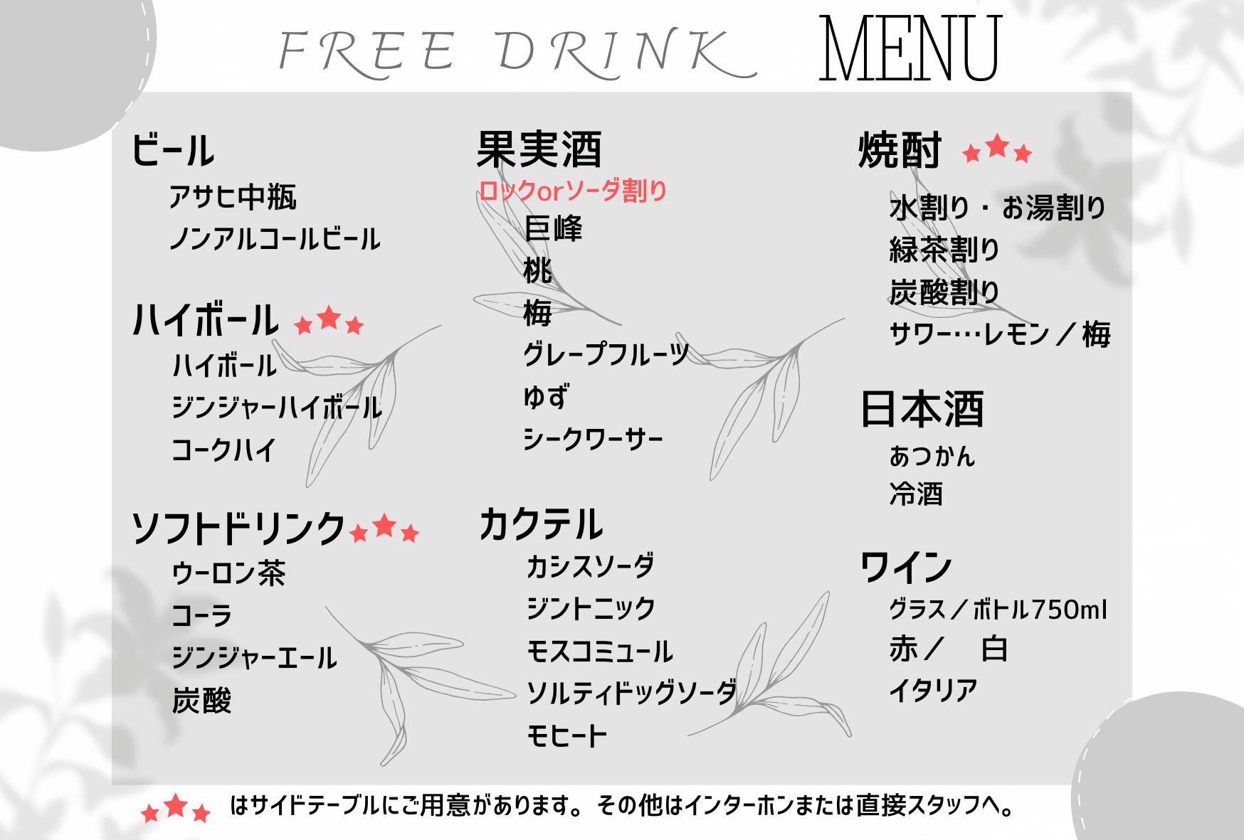 - 個室をご利用の場合、メニューが異なります。個室メニューをご覧になる場合は下のボタンからどうぞ。
